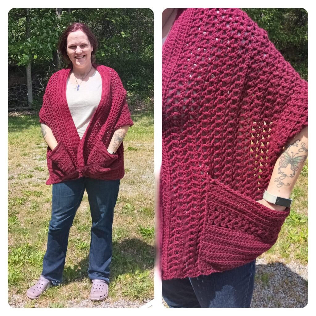 Embrace effortless style and unparalleled comfort with this beautiful, hand-crocheted pocket shawl. More than just an accessory, it’s the perfect blend of a cozy wrap and a functional cardigan.